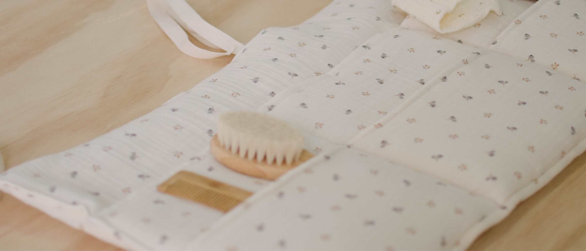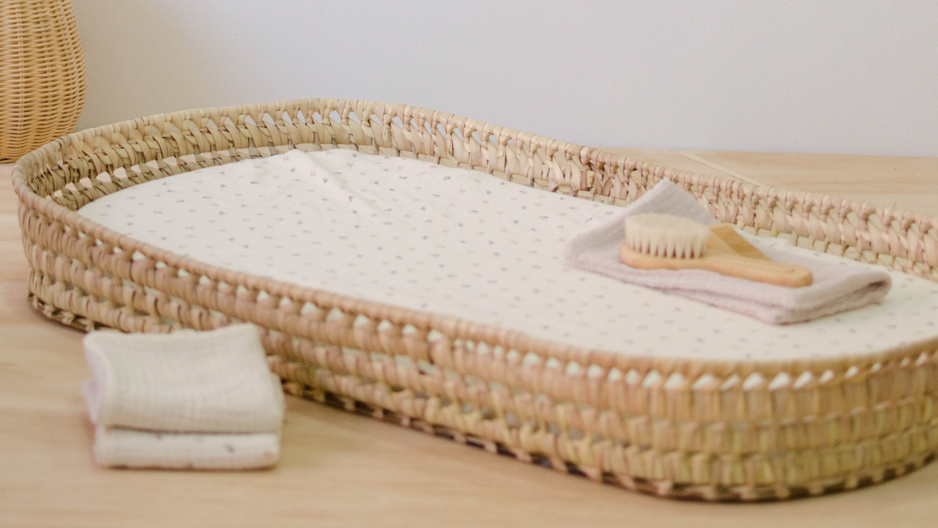Como verás, en una pequeña cestita al lado del cambiador te caben todos los productos que vas a necesitar para el cuidado de la piel del bebé. También puedes incluir algunos de estos productos en el organizador de tu cuna Nonotú. Ahora los podrás en nuestra web disponibles en dos estampados: liso en color crudo o con pequeñas flores.